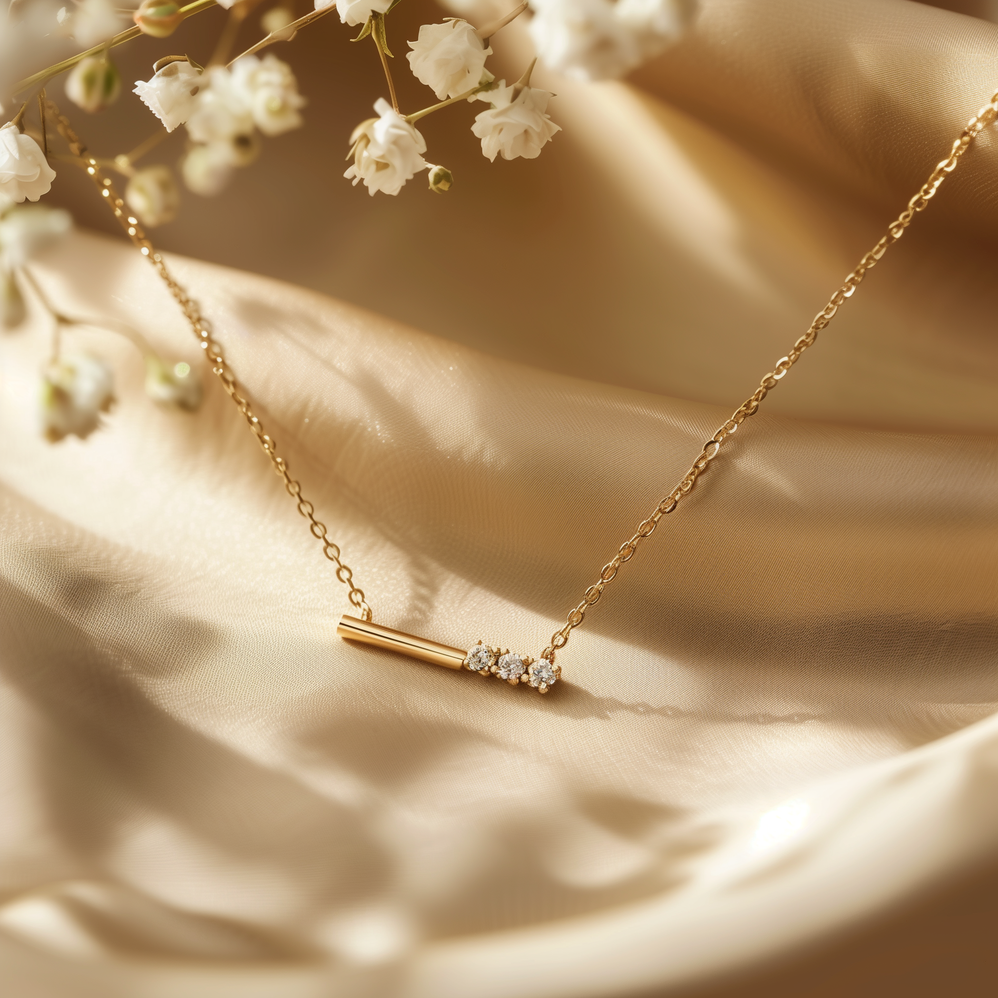 Inspired by the strength and unity of the family, the "La Sagrada Familia" embodies elegance and connection. Crafted from a cylindrical solid 18k gold bar, this necklace features three small lab grown diamonds, each measuring 0.05 carats, delicately set to represent the enduring bond shared among family members.